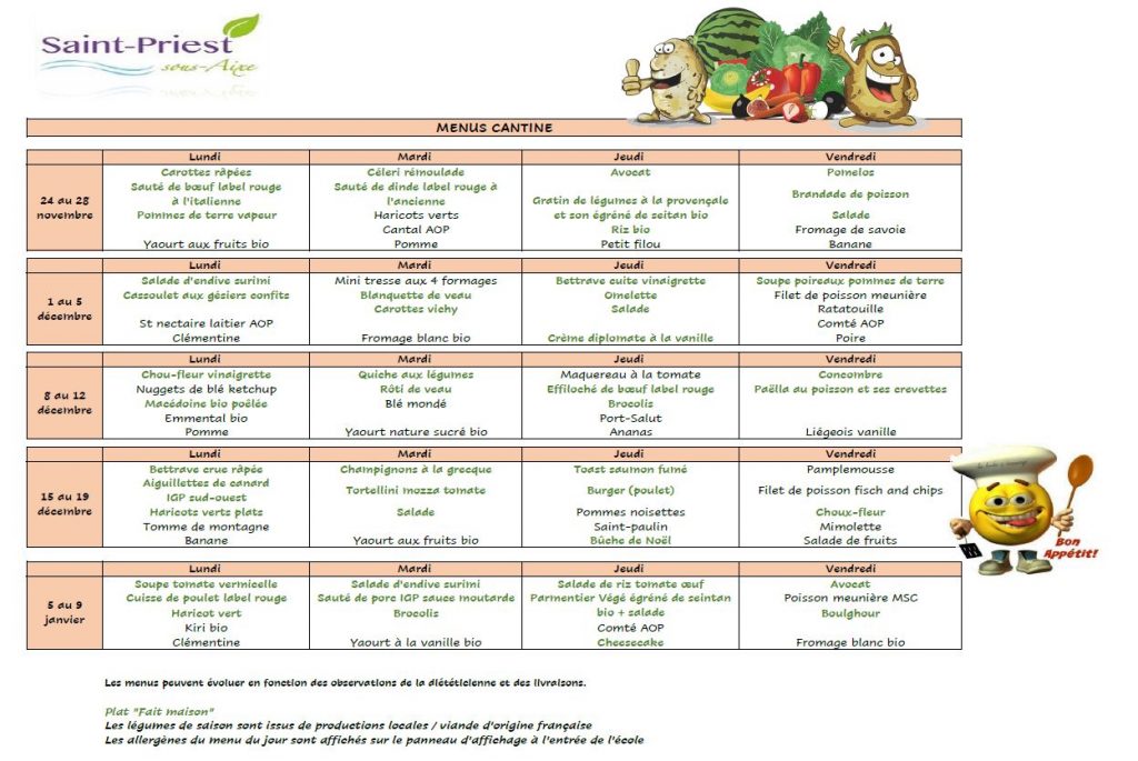Menus restaurant scolaire Les menus sont établis sous réserve de modifications liées à l’approvisionnement et / ou observations de la diététicienne.